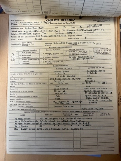 A week after Gertrude’s death, on July 1st, 1929, Thomas put the two older children into the Children’s Home of Easton, PA. The home was setup in 1885 and is still operating today.