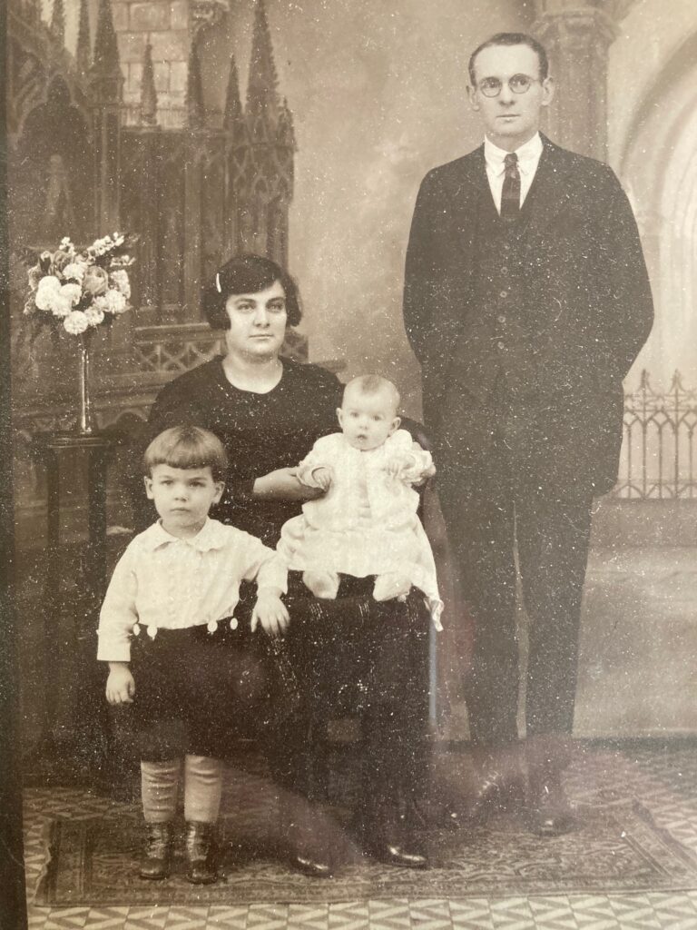 <In the picture, above, is my grandfather, Thomas McGee, and Gertrude Schweibinz. With them are Herbert and my mother, Anna who looks to be, perhaps, less than a year old. This would be about 1926, then.>
